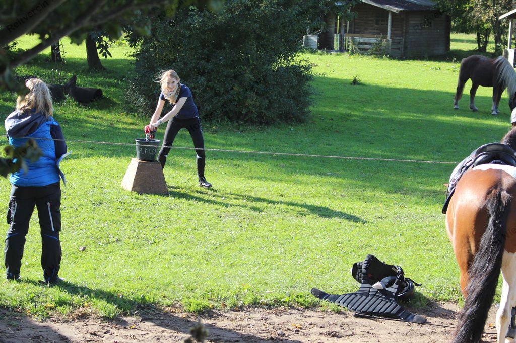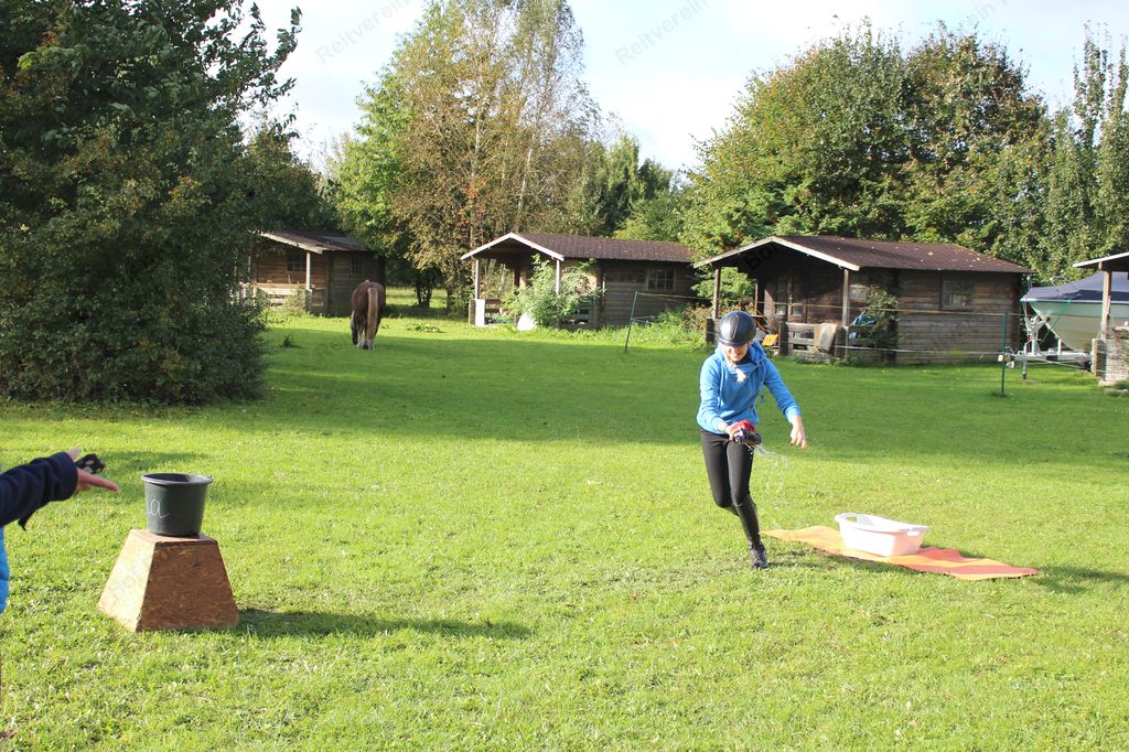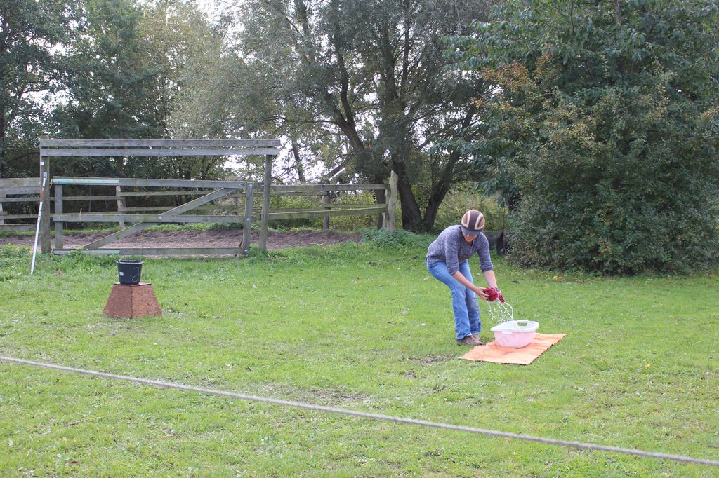 Hier galt es, in einer Minute möglichst viel Wasser mit einem Handtuch aus der Wanne in den Eimer zu bringen.