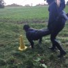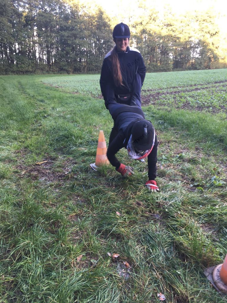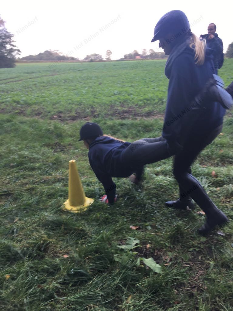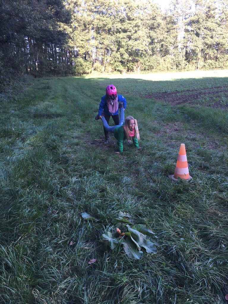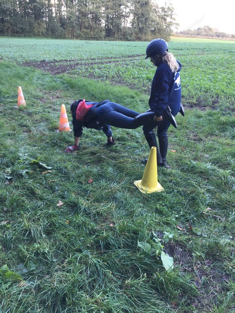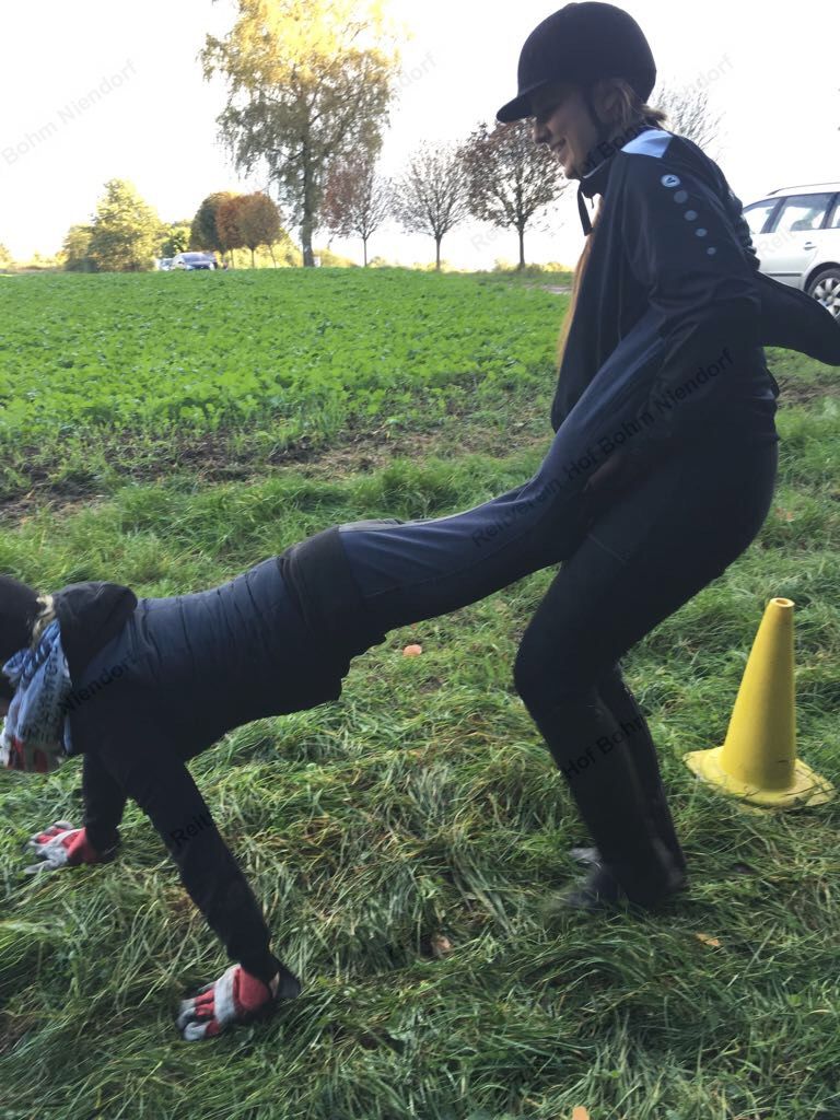 Mit einer menschlichen Schubkarre mußte hier ein rohes Ei durch einen Slalom gebracht werden.