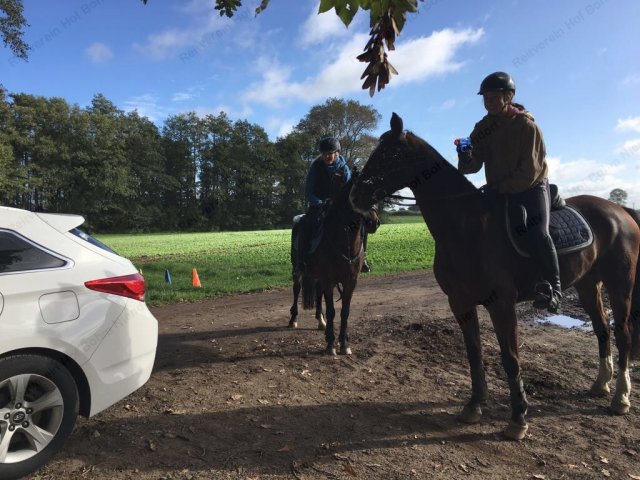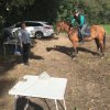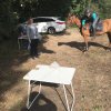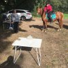 Hier galt es, vom Pferd aus (für Radler aus dem Stand) mit Kastanien eine Büchsen-Pyramide umzuwerfen.