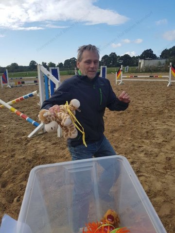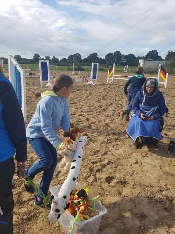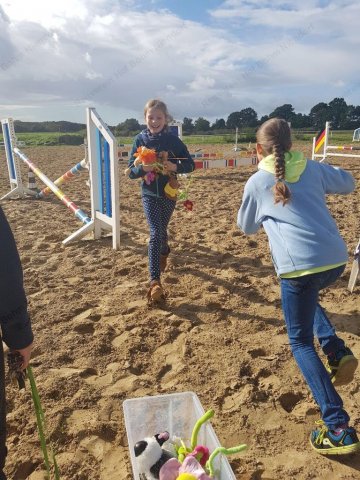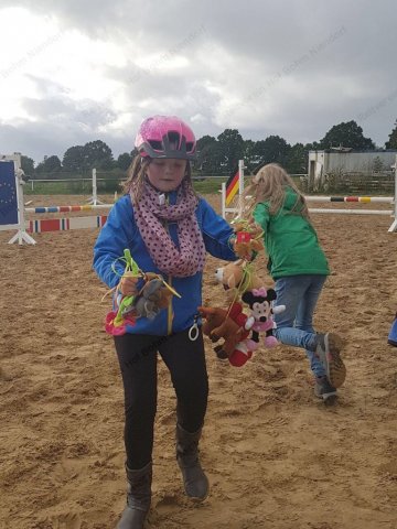mußten zu Pferde (oder zu Fuß) in einer Minute möglichst viele herumhängende Plüschtiere eingesammelt werden.