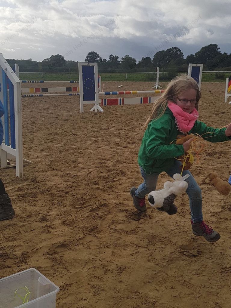 mußten zu Pferde (oder zu Fuß) in einer Minute möglichst viele herumhängende Plüschtiere eingesammelt werden.