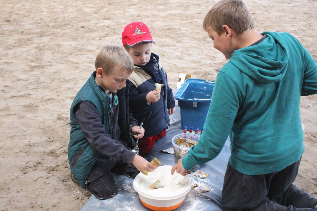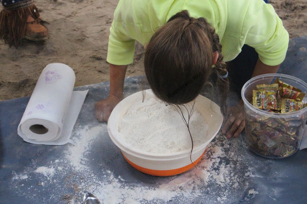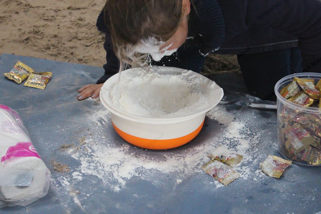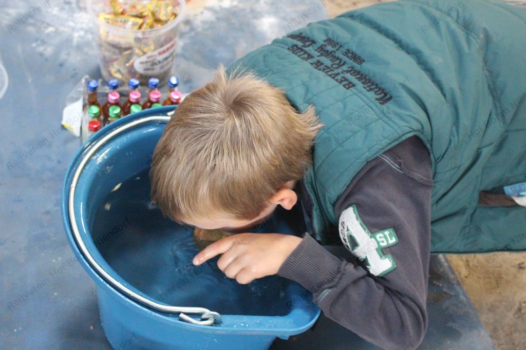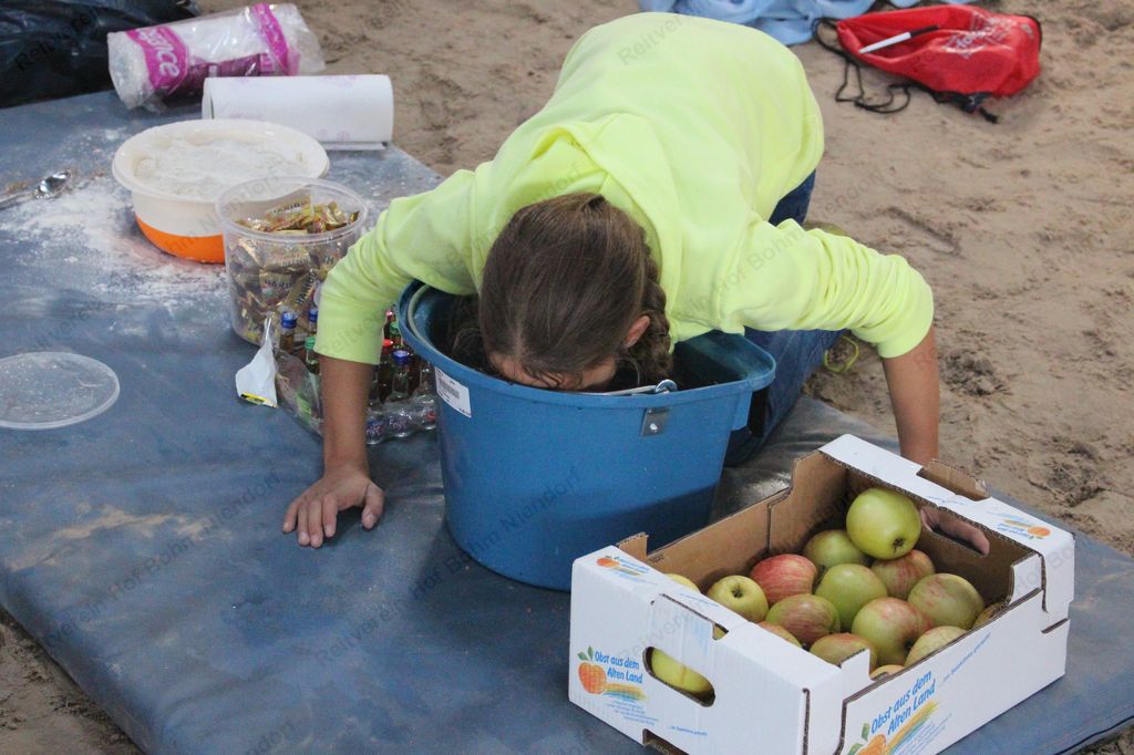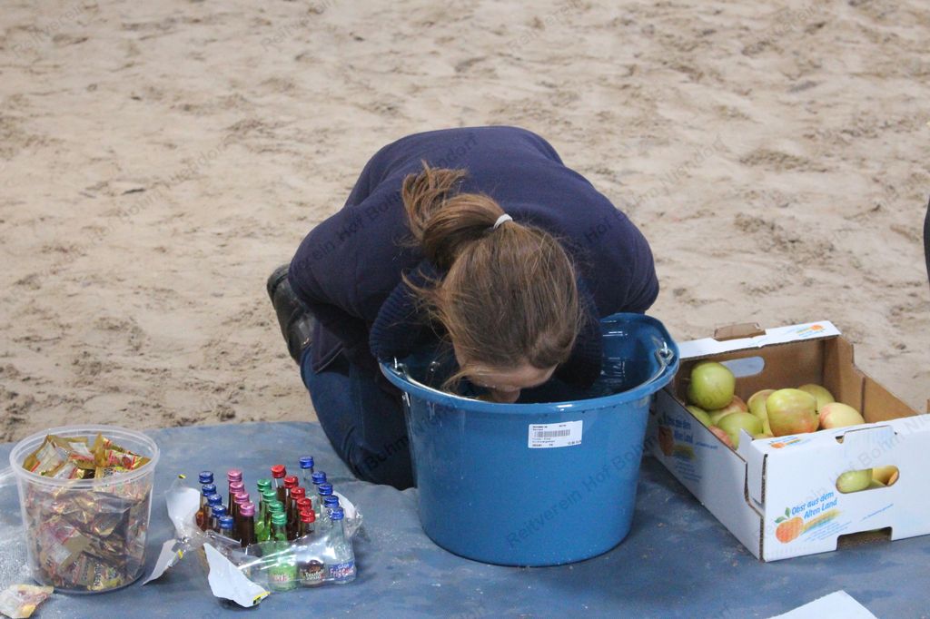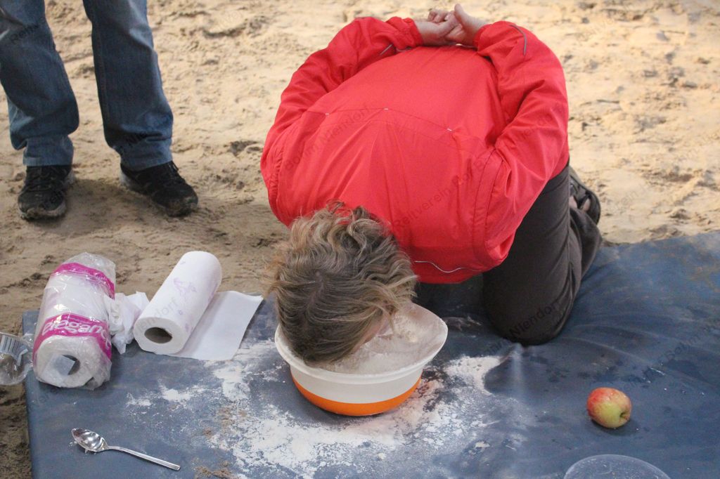 Nur für Radler: Es mußten Äpfel gewaschen und gemehlt werden - ohne Zuhilfenahme der Hände.