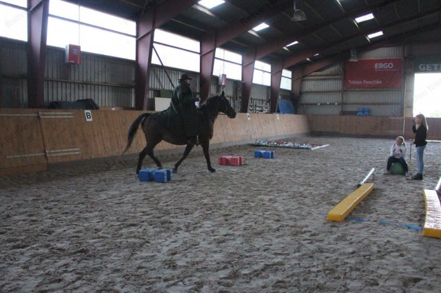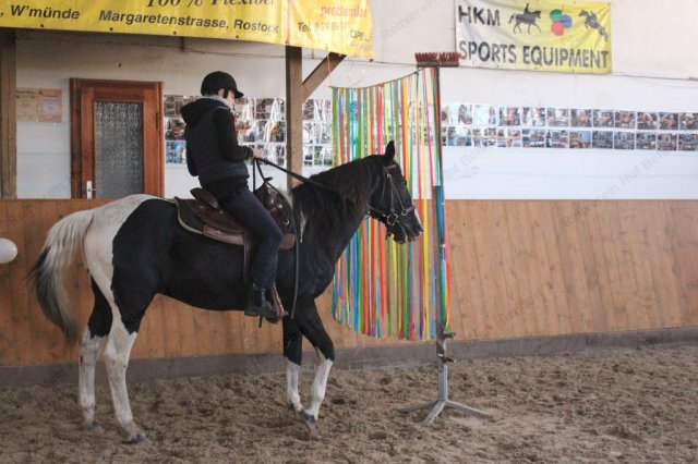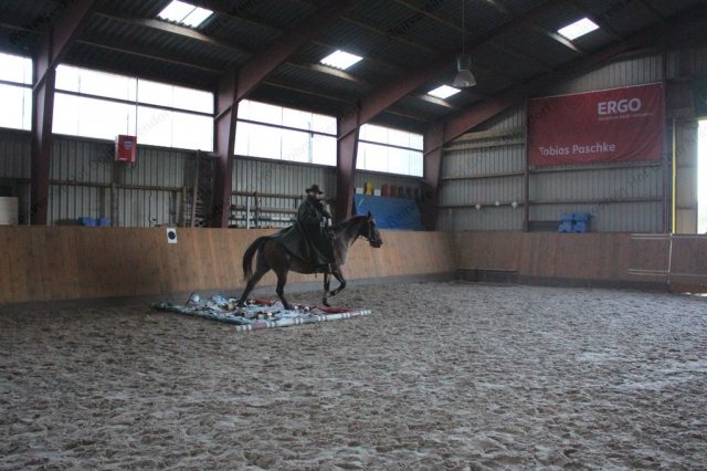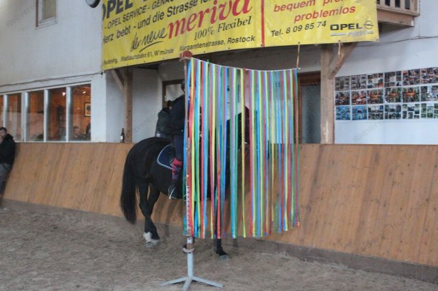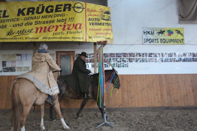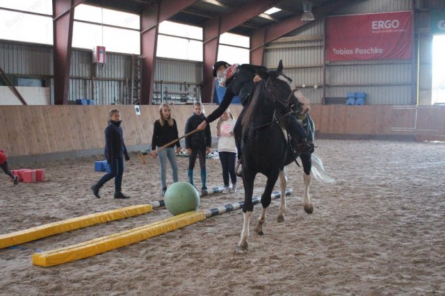 Nur für Reiter:  Ein Vertrauens- und Geschicklichkeits-Parcour war für einen Reiter zu durchreiten, in der Hand einen Becher mit Wasser drin - und einem Loch im Becherboden.