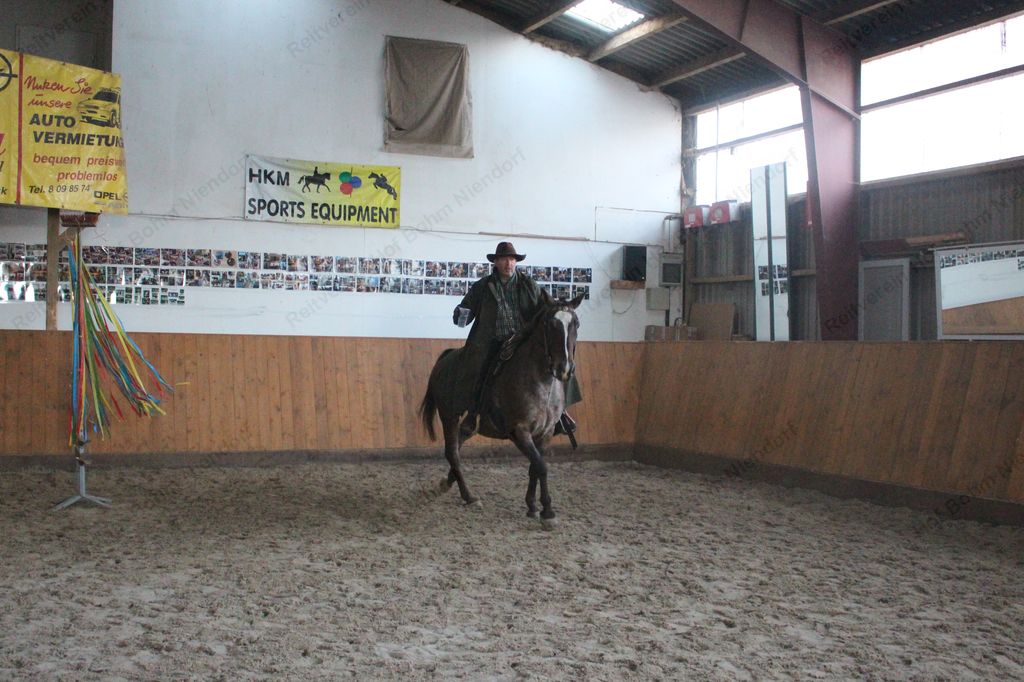 Nur für Reiter: Ein Vertrauens- und Geschicklichkeits-Parcour war für einen Reiter zu durchreiten, in der Hand einen Becher mit Wasser drin - und einem Loch im Becherboden.