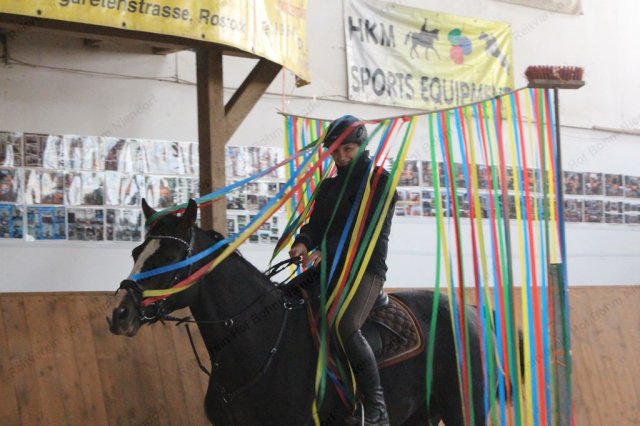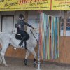 Nur für Reiter: Ein Vertrauens- und Geschicklichkeits-Parcour war für einen Reiter zu durchreiten, in der Hand einen Becher mit Wasser drin - und einem Loch im Becherboden.
