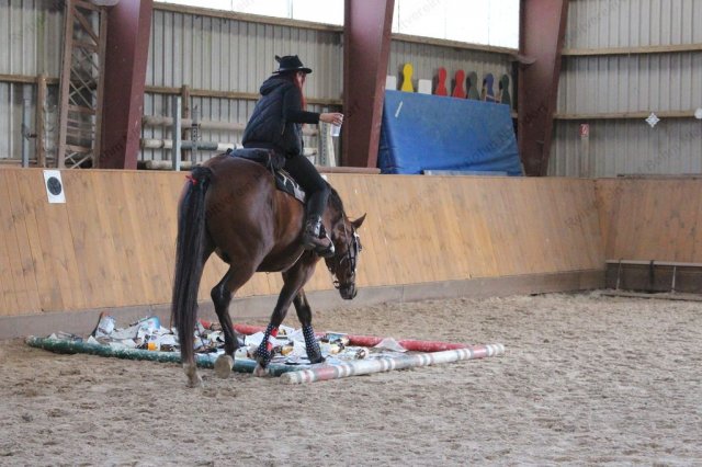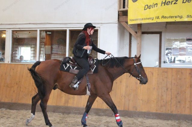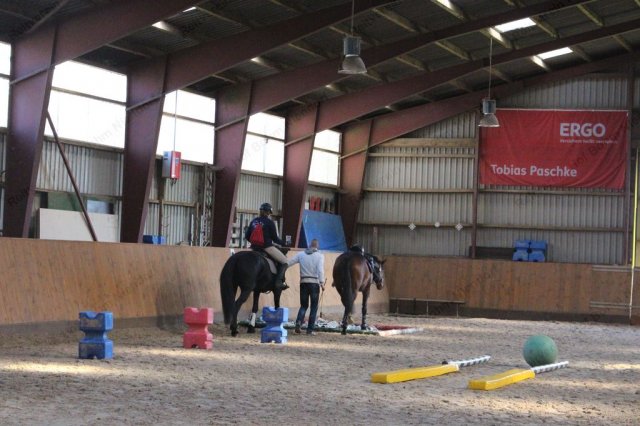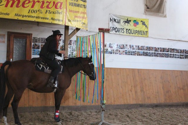 Nur für Reiter: Ein Vertrauens- und Geschicklichkeits-Parcour war für einen Reiter zu durchreiten, in der Hand einen Becher mit Wasser drin - und einem Loch im Becherboden.